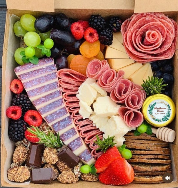 Perfectly packed in a stylish box or small platter, this charcuterie selection is ideal for a cozy girls’ reunion. Featuring savory salami, and three delectable cheese varieties, it’s balanced with sweet touches like chocolate, honey, and fresh fruit. Paired with crisp crackers, this board is a delightful mix of sweet and savory flavors that will impress and satisfy. Designed to feed 3 to 5 people, it’s the ultimate choice for intimate get-togethers